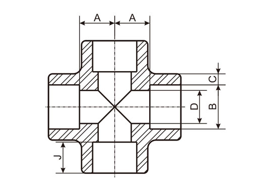 | DN | Nom. Pipe Size | Center to Bottom of Socket-A | Socket Bore Dia. B | Bore Dia.Of Fitting D | Socket Wall Thickness(2) C | Body Wall Thickness G | Depth of Socket Min. J | ||||||||||||||