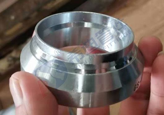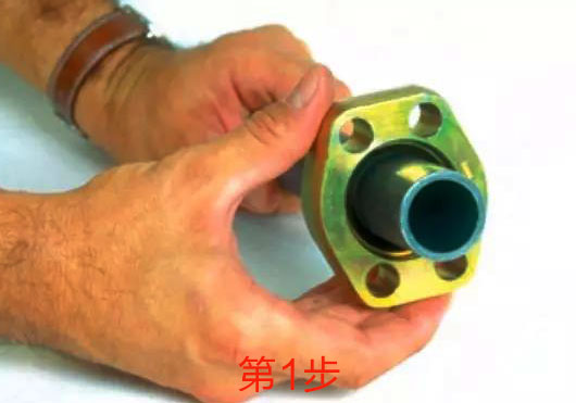 1、扩口准备:切割适当长度管材保证切口平整,去除切口处的毛刺并清除切削或研磨后产生的金属屑,将松套法兰套入扩口端。