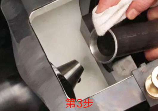 3、扩口检查:回撤扩口锥头,松开卡具,取下扩口管端,清洁和检验扩口锥面,扩口锥面应该光滑、无裂纹。