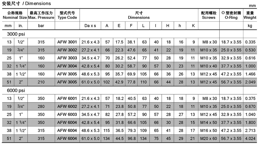 Ⅴ、密封件:法兰产品全部采用O型圈(O-Ring)密封,密封圈材料为丁晴橡胶(NBR),按订货要求,也可提供氟橡胶(FPM)O型圈。