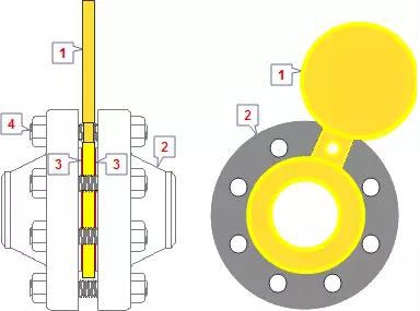 1. 浆型盲板 2. 法兰 3. 垫片 4. 螺柱