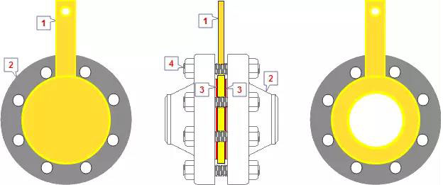 1. 8字盲板 2. 法兰 3. 垫片 4. 螺柱